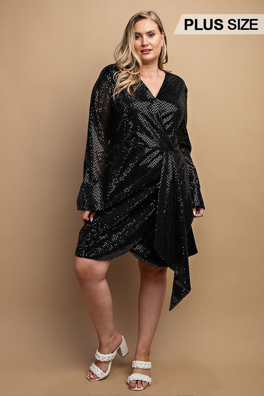 Metallic Wrap Dress With Split Cuff And Snap Buttons